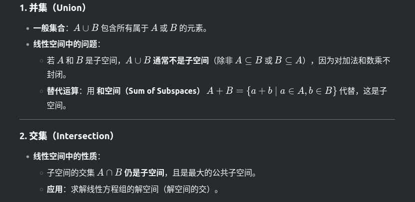- 零子空间 显然,只有零元素的子集可以构成线性空间,我们称之为零子空间;