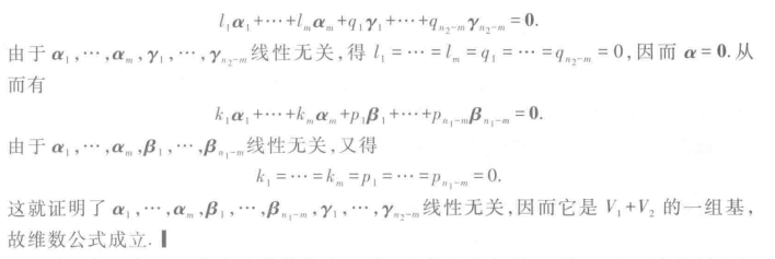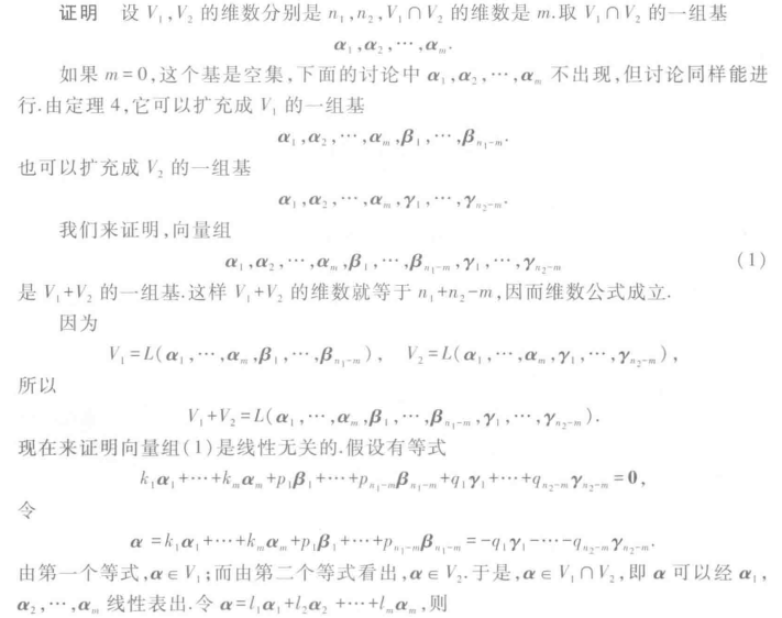 定理3 设W是数域P上n维线性空间V的一个m维子空间,