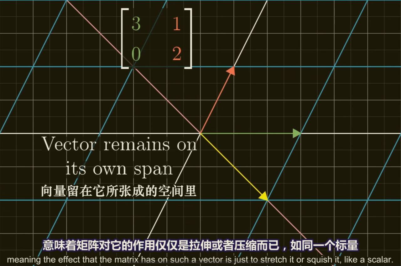 从 可以推出 也就是说,特征向量不是被特征值唯一决定的(因为任何非零倍数都是特征向量),但特征值是被特征向量唯一决定的(一个特征向量只能属于一个特征值)。